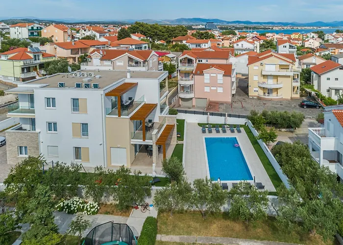 Featuring a deck and a heated swimming pool, the 4-star Villa Corcovado Deluxe Apartments With Heated Pool Vodice hotel lies 4.2 km from the uninhabited Croatian Tijat Island. Guests of the aparthotel can immerse themselves in the tranquillity of the garden, complete with a balcony.